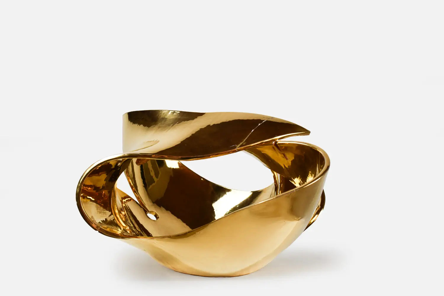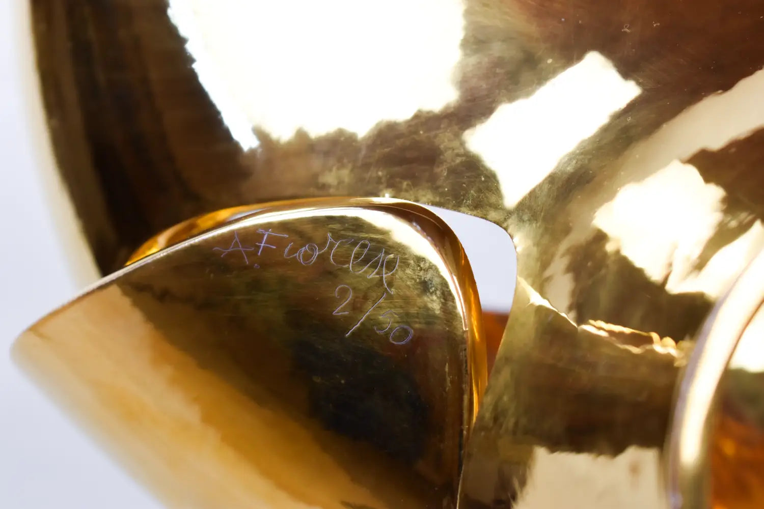A limited-edition Italian ceramic vase by Amedeo Fiorese, crafted in 1960 and glazed in luxurious 24-carat gold. Numbered 2/50, its lustrous surface catches the light with a radiant glow, showcasing the masterful artistry of mid-century Italian design. Despite a small breakage on one side, this vase remains a striking decorative statement, perfect for elevating any interior with bold elegance and timeless sophistication. Designed exclusively for decorative and interior design purposes.